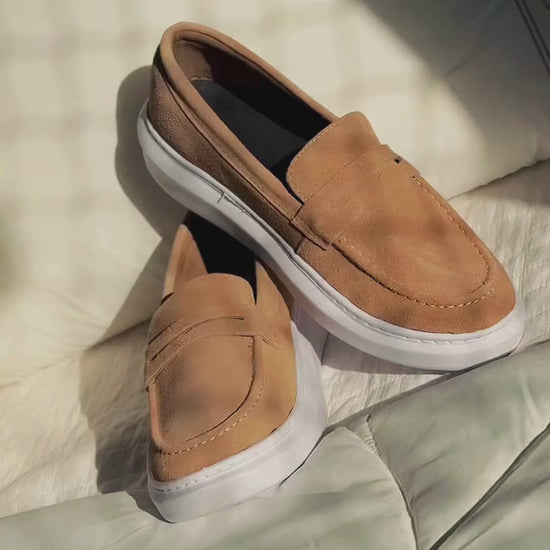 O Loafer Masculino Bege é uma definição de sofisticação contemporânea com uma pegada Old Money . Produzido em camurça de couro legítimo , esse loafer é elegante, confortável e sofisticado para o homem moderno.